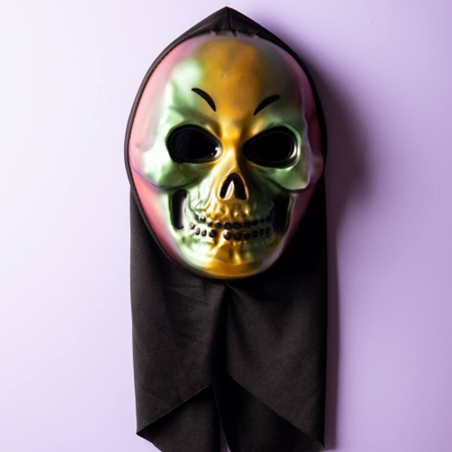 Iedereen een nachtmerrie. Niemand doet meer een oog dicht als ze dit Halloween masker op het feest of tijdesn een spooktocht zagen rondlopen. Deze ´Enge Doodskop´ is eenzijdig geprint met een zwart stoffen achterkant. Hierdoor wordt het masker over het hoofd aangetrokken en valt dus rondom het hoofd