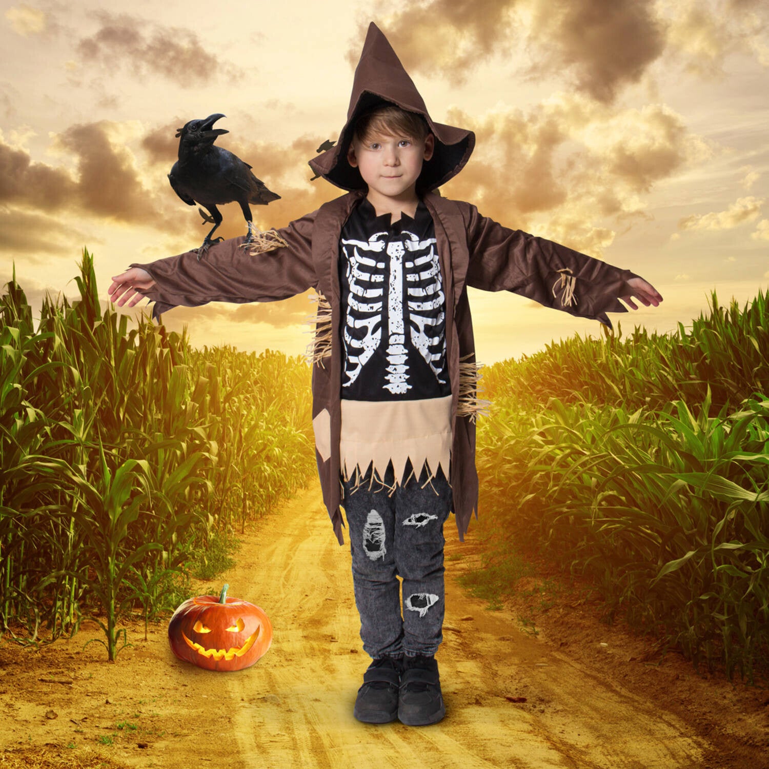 Zoek je een verkleed kostuum voor carnaval of halloween? Deze enge vogelverschrikker met skelet maakt iedereen bang.