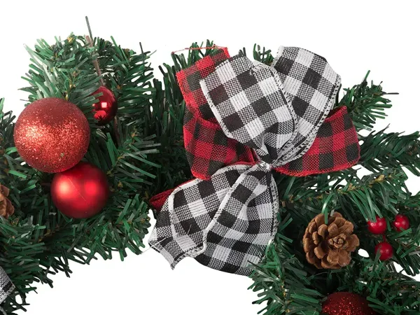Hang deze kerstkrans voor je raam, aan de deur of aan een muur om je kerstdecoratie compleet te maken. De rode accenten geven een mooi kerstgevoel. Deze kerstkrans geeft net dat beetje extra versiering om een mooi kerstdecor te maken.